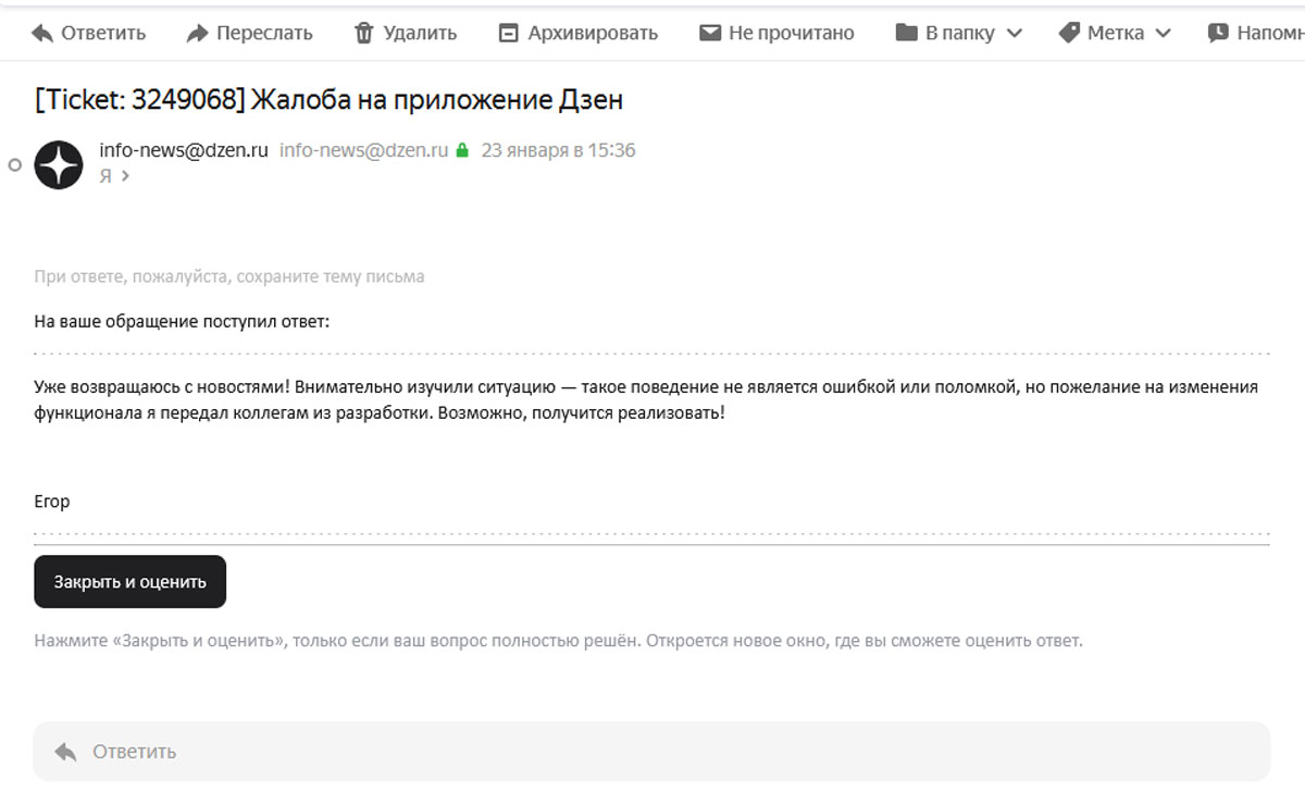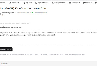 Редакция «Страны» неоднократно обращалась в службу поддержки «Дзена» с жалобами на ошибки в работе приложения, однако получала стандартные ответы.