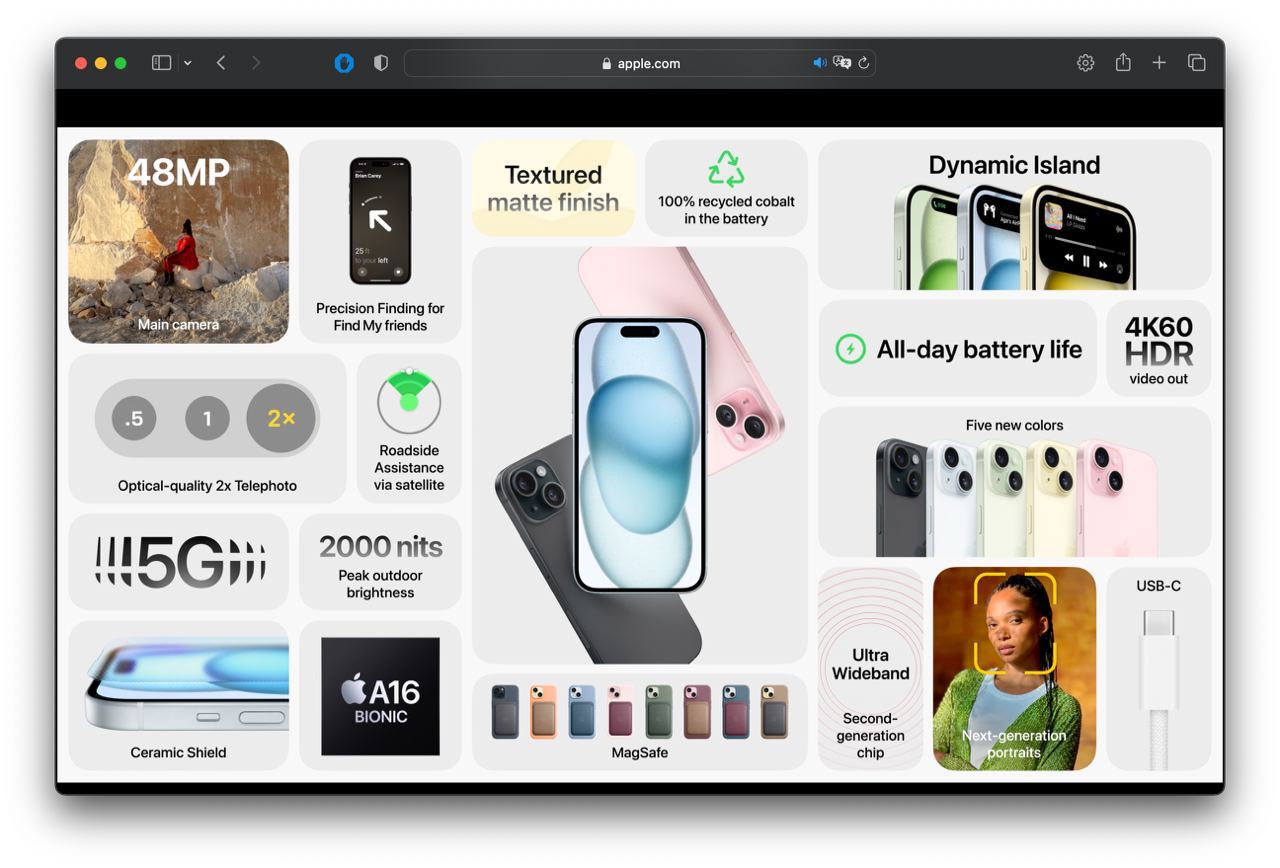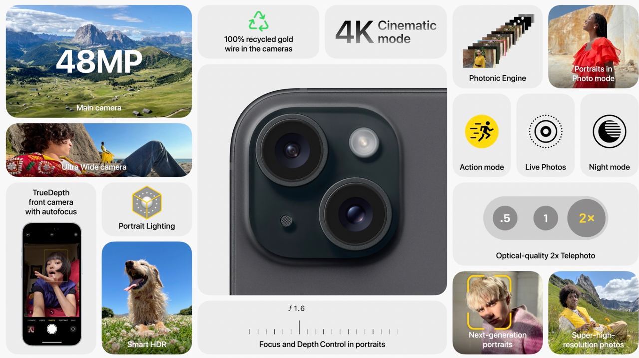 Основная камера нового iPhone будет иметь разрешение впечатляющих 48 мегапикселей и сможет захватывать больше света, что приведет к улучшению качества фотографий. Более того, компания представила модели iPhone 15 Pro и Pro Max с титановым корпусом, которые станут прочнее и легче предыдущих моделей, благодаря новому материалу. При этом размеры экранов останутся такими же, но устройства станут немного компактнее.