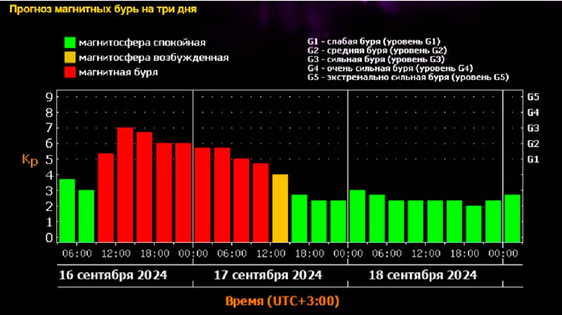 Предполагается, что волнения в магнитосфере Земли должны прекратиться к вечеру 17 сентября.