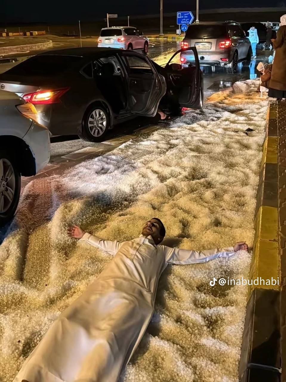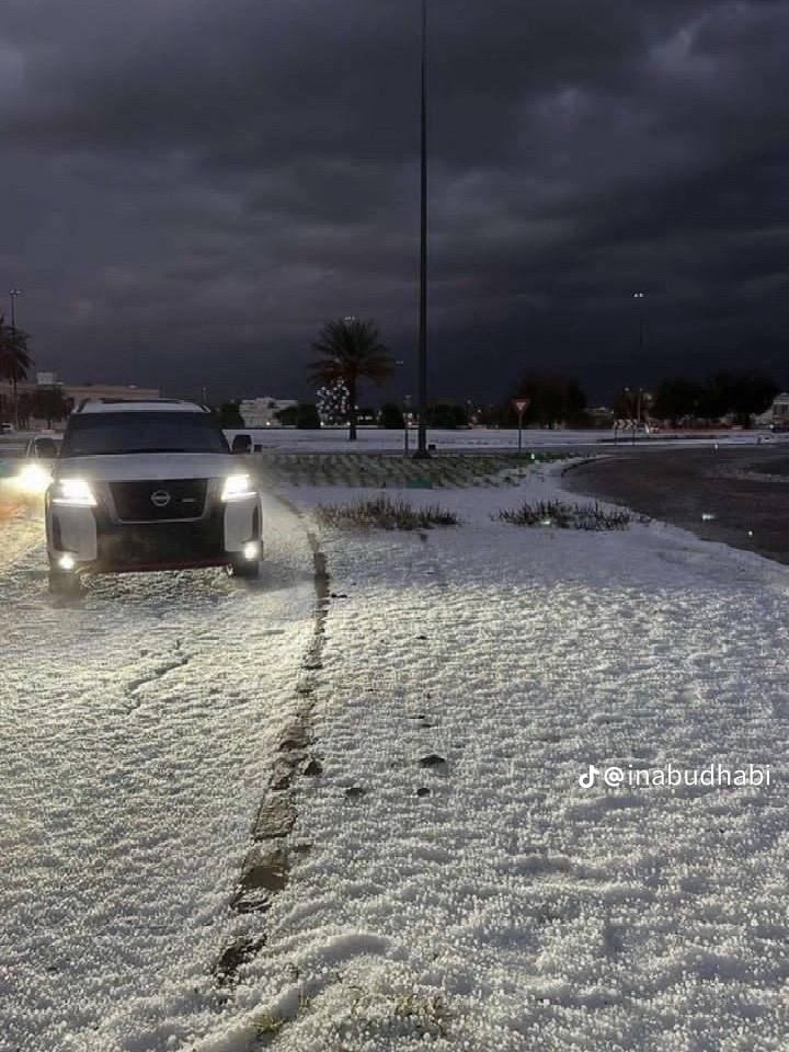В социальных сетях появились многочисленные видеозаписи, где пустыня целиком покрыта белым покрывалом. Интенсивные дожди в различных районах страны не прекращались всю ночь, множество дорог, включая те в Дубае, оказались затоплены, вместе с оставленным на них транспортом.