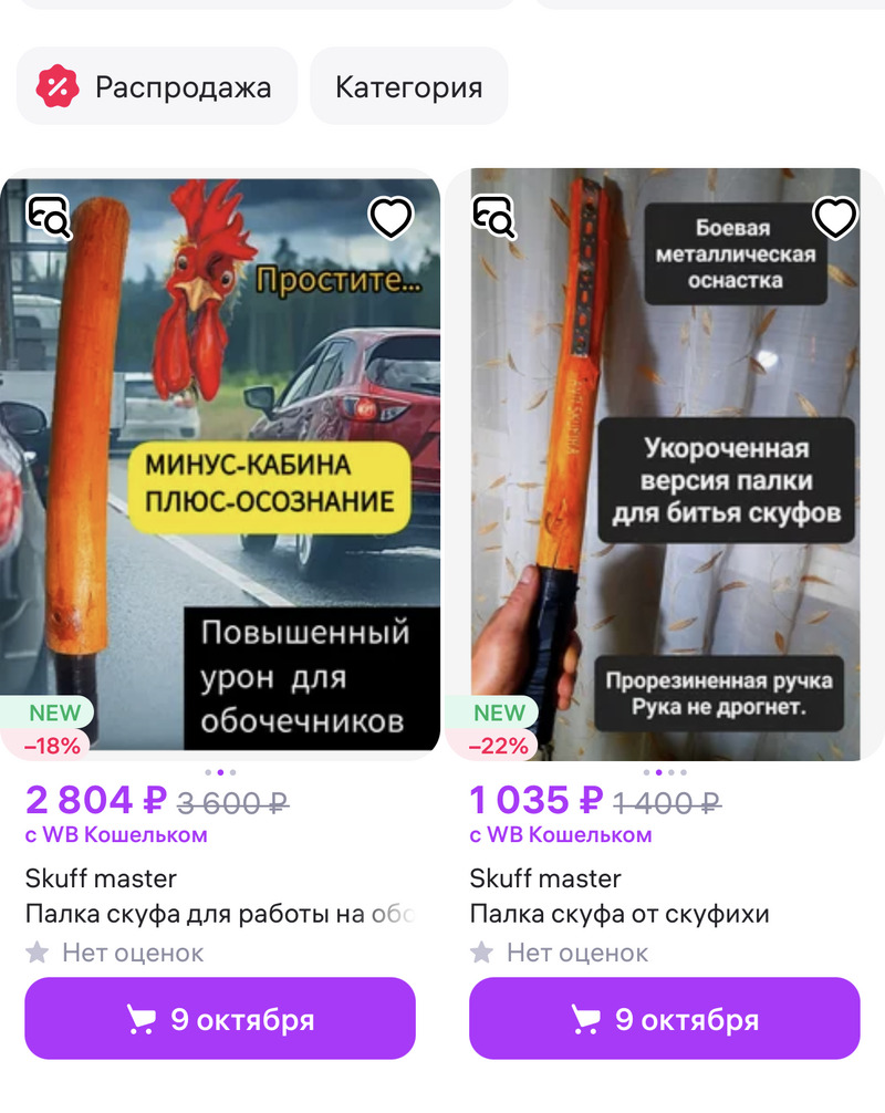 Появились и устрашающие аналоги: "палка скуфа для работы на обочине" и "палка скуфа от скуфихи". Очевидно, что цель палки уже не крапива, а люди. Продавцы товаров шутят, что "изобретение" поможет избавиться от наглых обочечников и "вразумить своих жен и мужей".